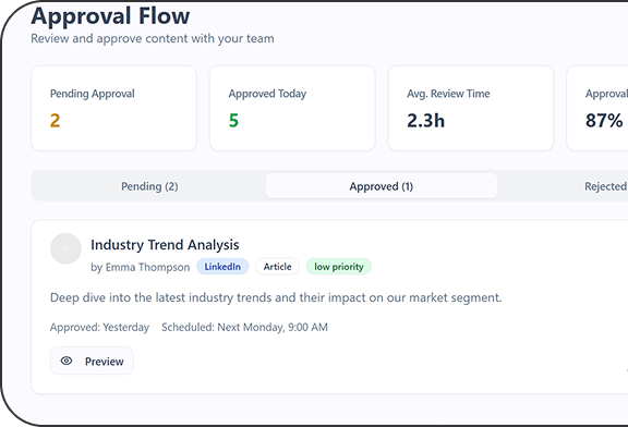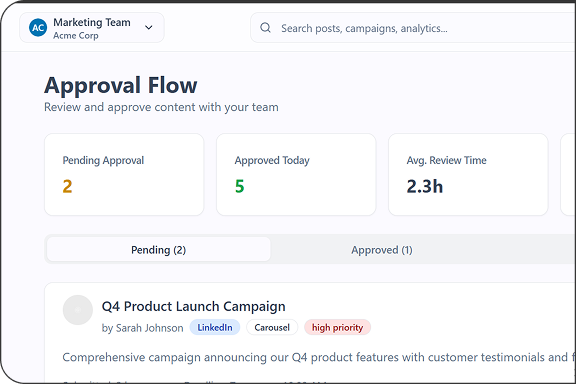 Absolutely. Workspace Management lets you organize multiple brands, clients, or departments with separate content calendars, approval workflows, and media libraries, all from one account.